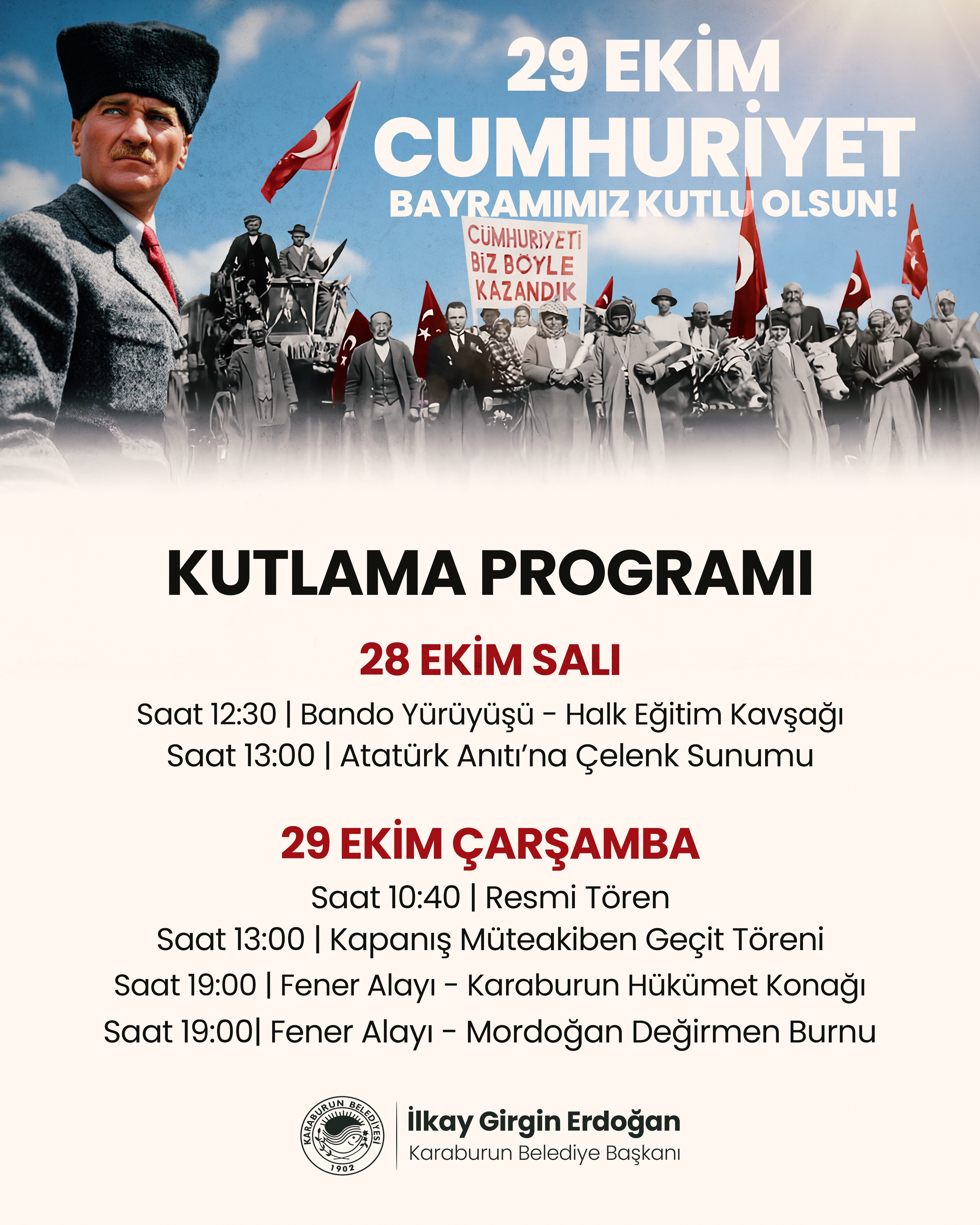 29 Ekim Kutlama Programı 2025 28-10-2025 | 30-10-2025
