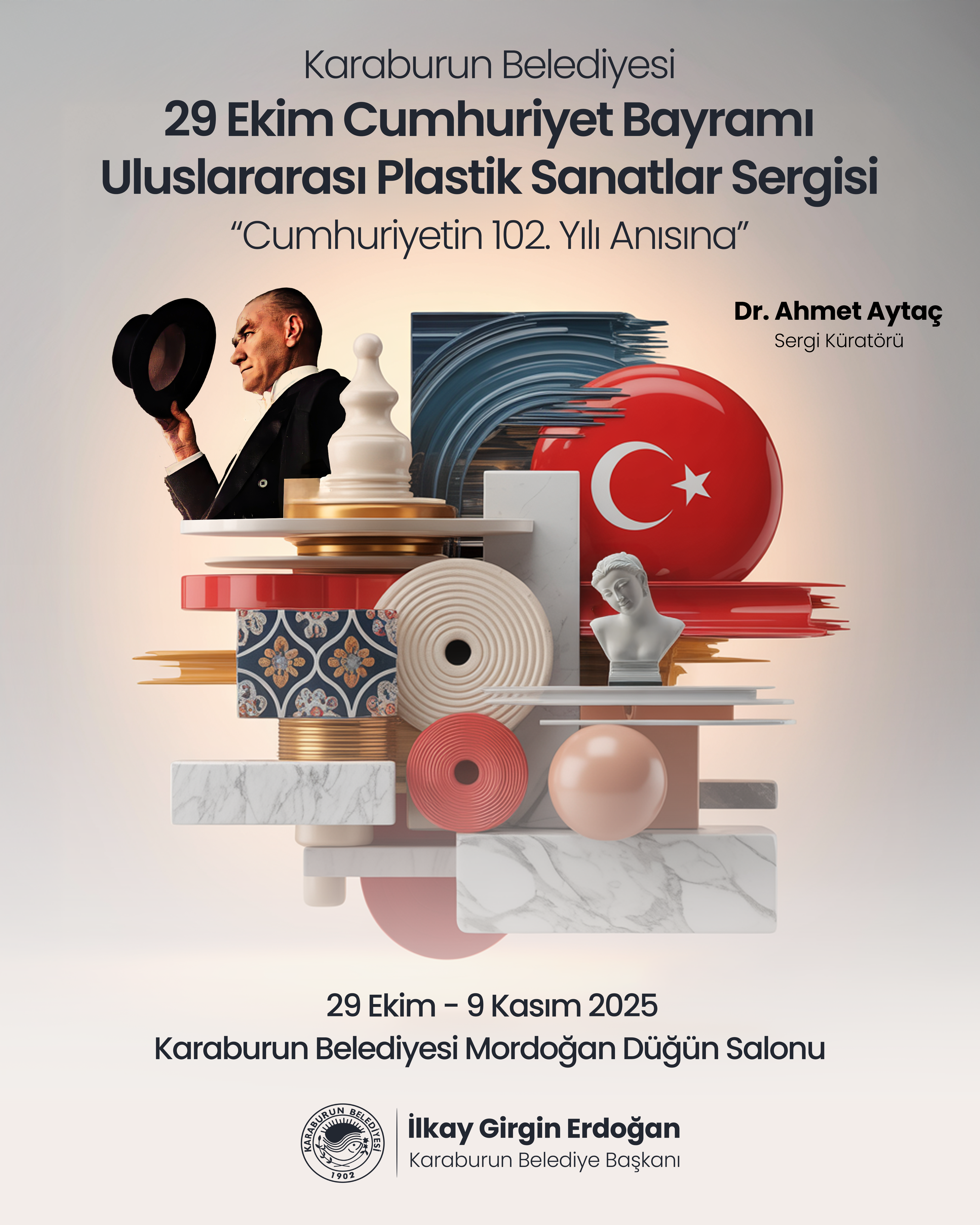 “Cumhuriyetin 102. Yılı Anısına” düzenlenen Uluslararası Plastik Sanatlar Sergisi, farklı ülkelerden sanatçıların eserlerini bir araya getiriyor.