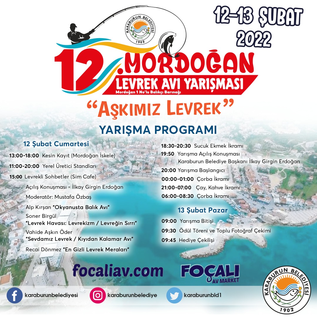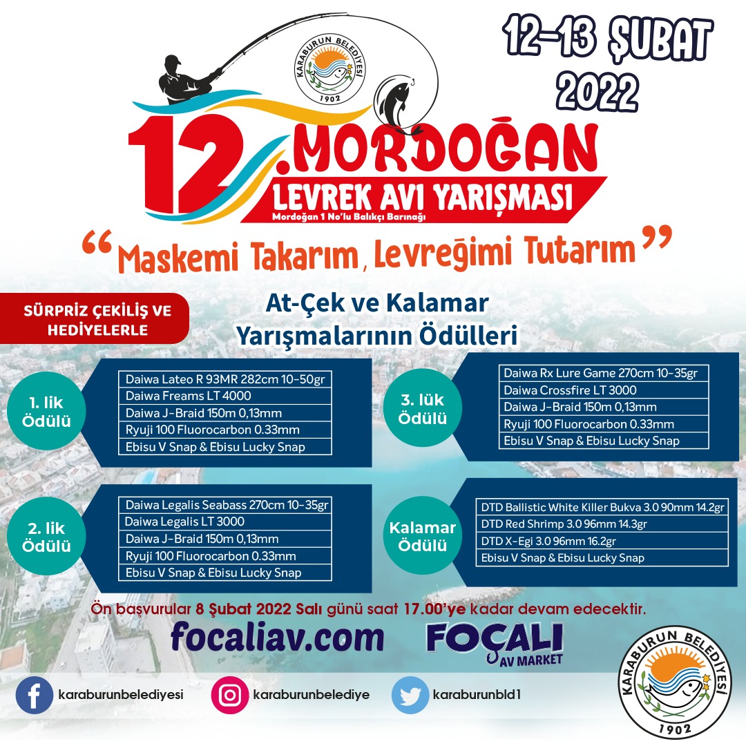 2025-02-15Karaburun Belediyesi tarafından bu yıl 14. kez düzenlenen Mordoğan Levrek Avı Yarışması, deniz tutkunlarını ve amatör balıkçılık severleri bir araya getiriyor. Gelenekselleşen yarışmamız, bu yıl 15 Şubat 2025 Cumartesi günü Mordoğan'da gerçekleşecek.