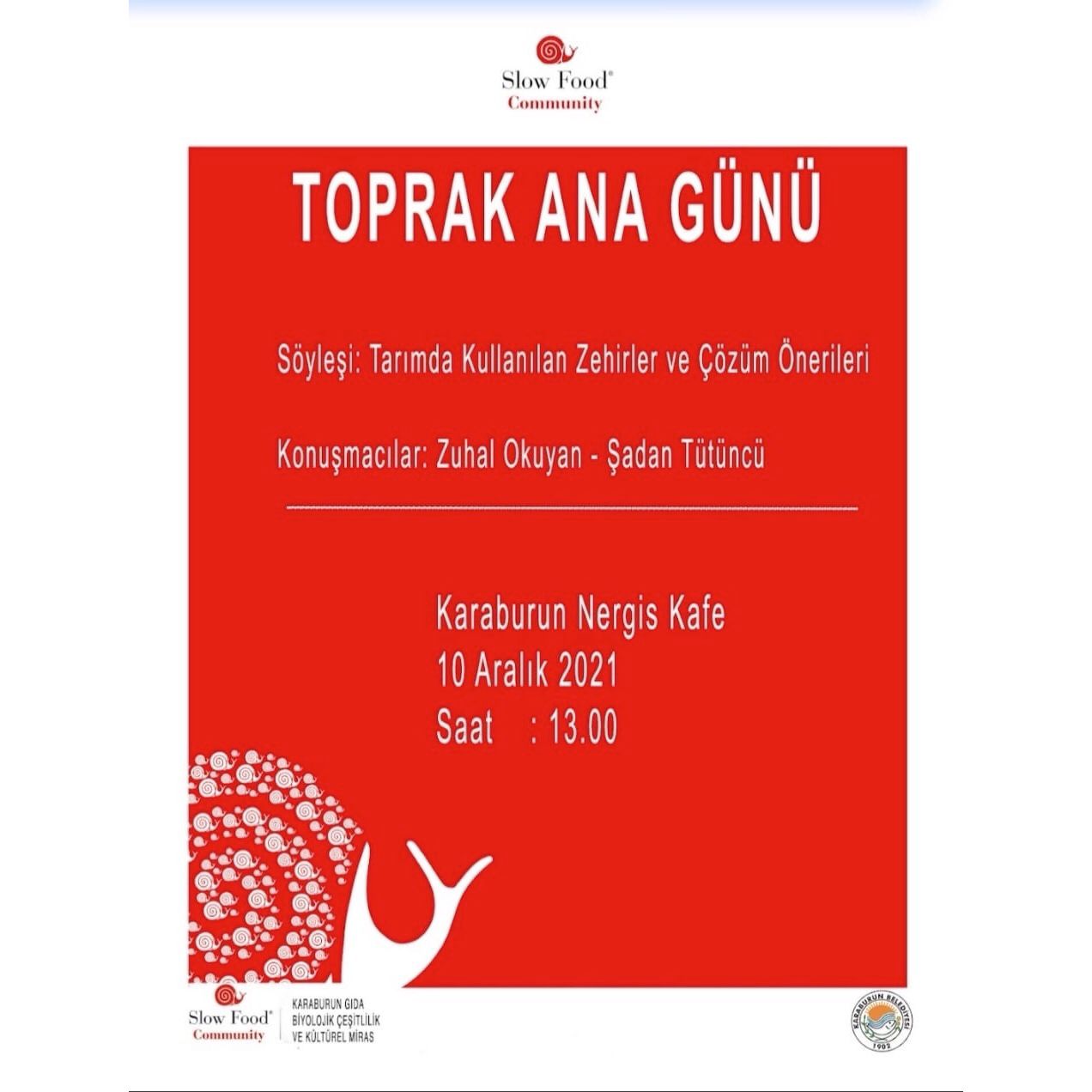 2019-12-10 11:0010 Aralık Salı günü Toprak Ana Günü kapsamında Karaburun Kapalı Pazaryeri'nde Karaburun yerel yemekleri ve ürünleri satışı yapılacaktır.