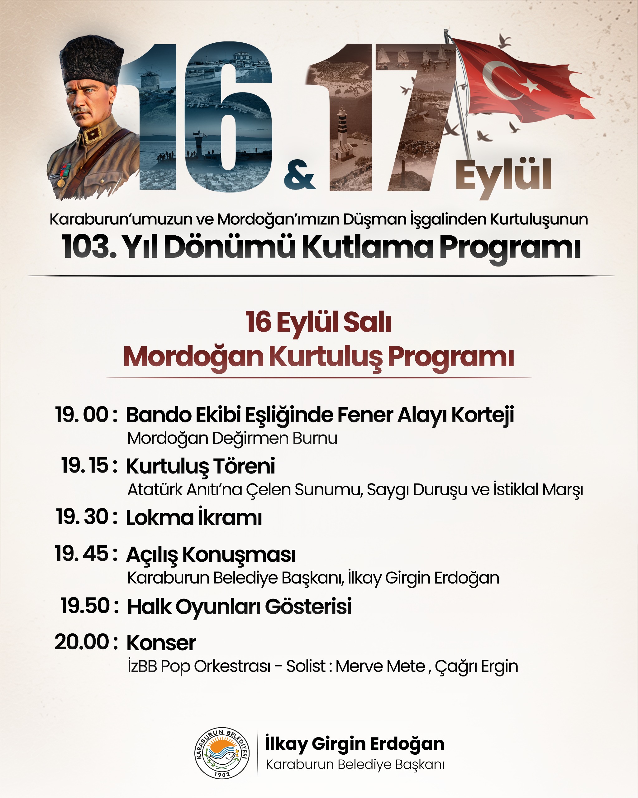 2025-09-16 19:00Mordoğan’ımızın Düşman İşgali’nden Kurtuluşu’nun 103. Yıl Dönümü kutlama programı