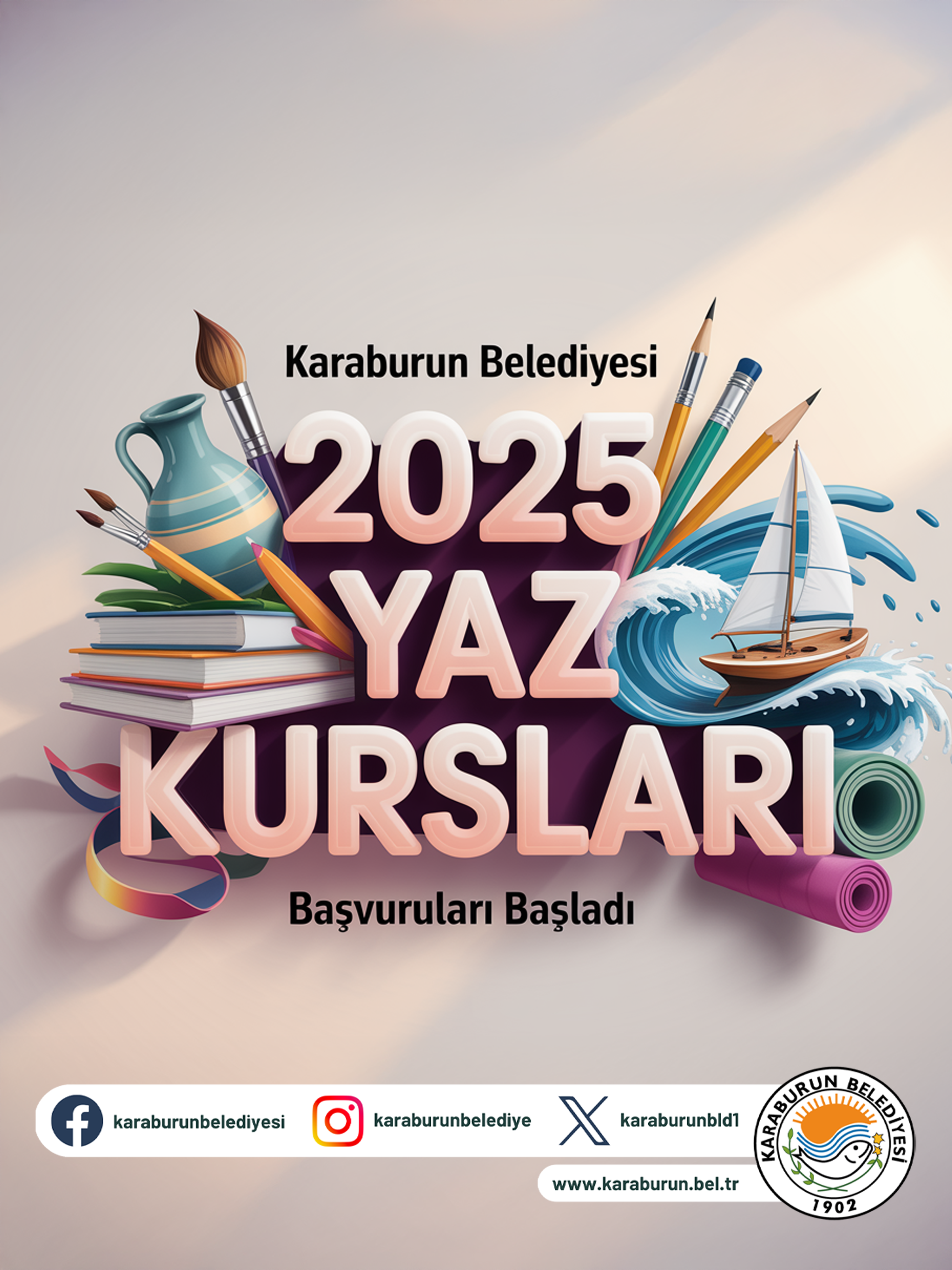 2025-06-18Karaburun Belediyesi tarafından düzenlenen yaz kursları için başvurular alınmaya başladı. Tüm yaş gruplarına yönelik eğitimlerimize hemen başvurun!
