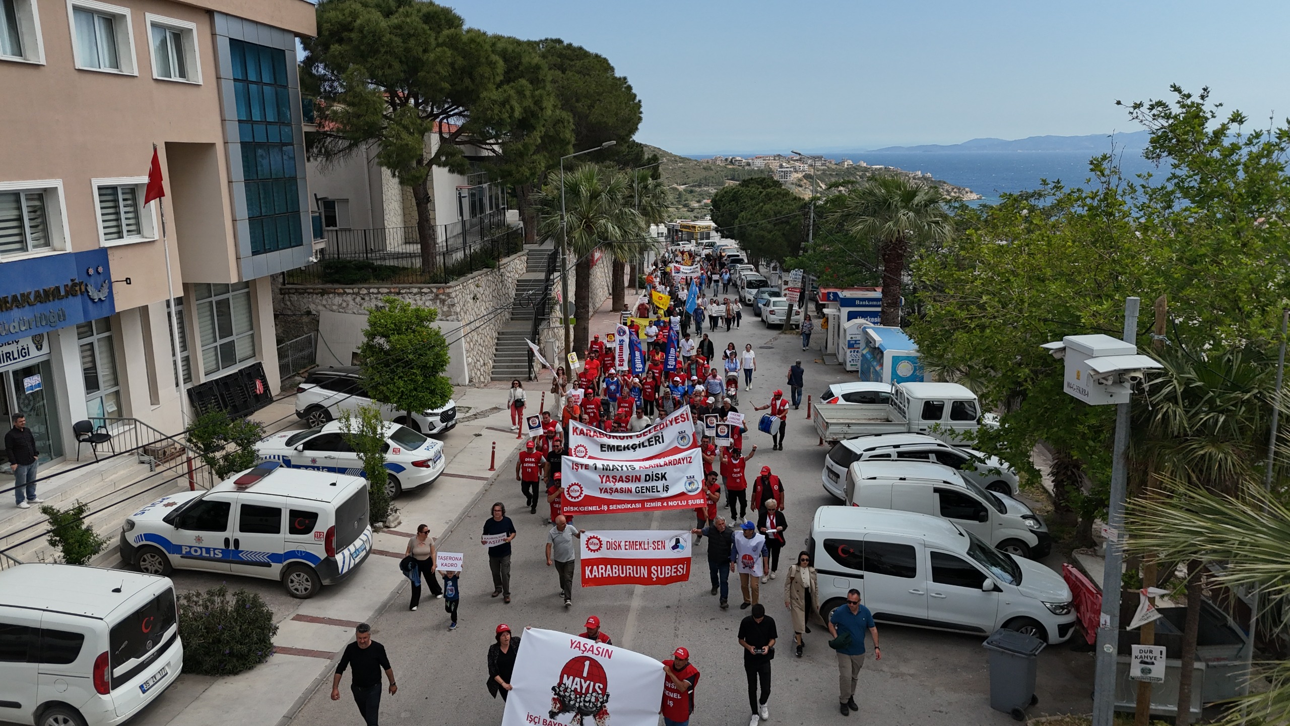 Tarihe ‘itirazın coğrafyası’ olarak geçen Börklüce Diyarı Karaburun, 1 Mayıs İşçi Bayramı’nı adına yakışan bir coşkuyla kutladı. DİSK ve KESK Karaburun Şubeleri koordinasyonundaki Karaburun 1 Mayıs Tertip Komitesi öncülüğünde bir araya gelen sendikalar, siyasi partiler, sivil toplum kuruluşları; Karaburun Zeytinli Kavşak’ta buluşup pankartlar ve sloganlar eşliğinde Karaburun Cumhuriyet Meydanı’na yürüdü. “Yaşasın 1 Mayıs, “Her Yer Taksim” sloganları atarak yürüyen Karaburun Demokrasi Güçleri, aynı içerikte dövizler taşıdı.